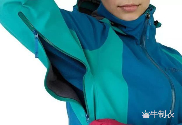 多數(shù)沖鋒衣都有設(shè)計在腋下散熱拉鏈的,它的作用是讓使用者在戶外活動中,根據(jù)實際使用情況調(diào)節(jié)服裝內(nèi)的溫度。對于專業(yè)沖鋒衣來說,拉鏈一般都采用防水功能的產(chǎn)品。而滑雪服因為其運動的特點,一般是把拉鏈設(shè)計在胸口附近或者上肢的前方。和沖鋒衣的相同的是。滑雪服的高檔產(chǎn)品也使用防水拉鏈。