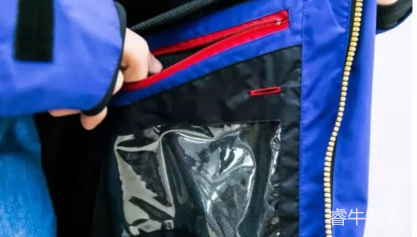 基于沖鋒衣簡潔的要求,它的兜袋一般很少。對于滑雪服來說就不同了,為了讓滑雪者收存更多東西,比如滑雪鏡、手套、手機之類的個人用品,滑雪服安排的兜袋很多,而且開口也很大,因為滑雪者需要帶著手套取放物品。開口處一般使用拉鏈密封,防止在劇烈運動時物品的丟失,需要特別注意的是:滑雪服的小口袋很多,材料柔軟的是為了存放手機和滑雪鏡,質(zhì)地透明的是用來存放滑雪時間卡,這些細(xì)節(jié)都是服裝設(shè)計人員充分考慮到使用者的實際需求后所設(shè)計的。