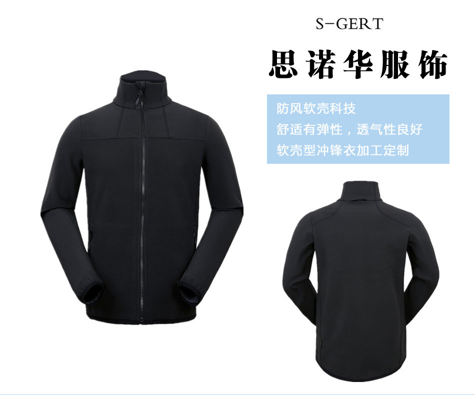 防風(fēng)透氣軟殼型沖鋒衣定制—思諾華服飾