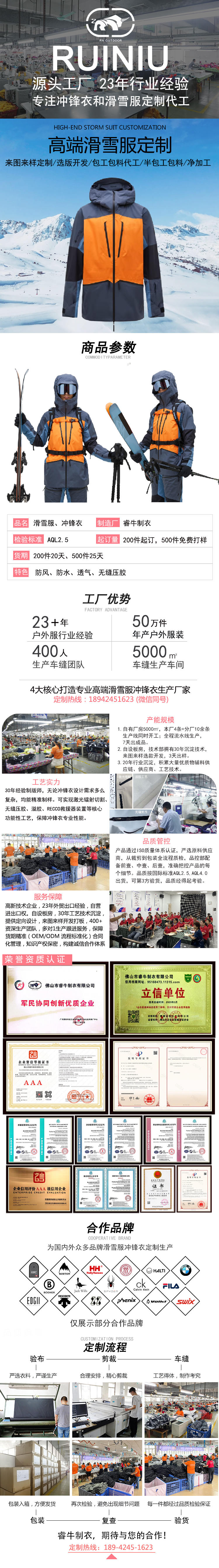 持續23年專注沖鋒衣、滑雪服定制加工廠家